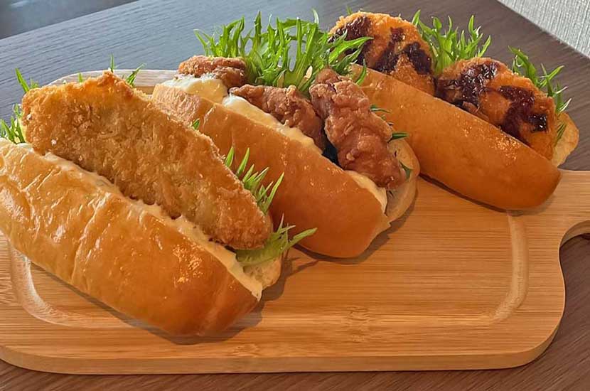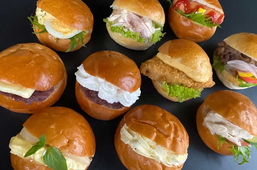こっぺぱんの焼成には酪王牛乳と県産卵を使用。トッピングする野菜・果物・肉類やあんこなど、福島ブランドの食材をにこだわった商品を、季節ごとにご提供しております。浜通り、中通り、会津の美味しさを詰めた「おむすび」や「おにぎらず」には、福島県産コシヒカリや相馬双葉漁協の海苔を使用。福島県内各地の美味しさを味わうことができます。